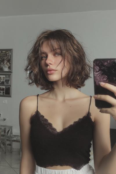 Ich liebe diesen texturierten Nacken-Bob: stumpfe Spitzen treffen auf weiche Wellen und feine Highlights. Mit etwas Salzspray und Scrunching entsteht dieses lässige, aber hochwertige Finish.