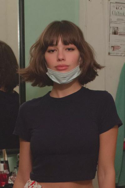 Ein kurzer Bob mit fransigem Pony, frech und soft. Ich arbeite Texturcreme in die Längen, zupfe einzelne Partien heraus – so wirkt es sinnlich, beweglich und absolut alltagstauglich.