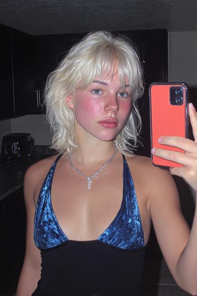 Dieser Shag-Bob lebt von gestuften Kanten und kühlem Blond. Ich zerreibe Trockenwachs in den Spitzen, um die Struktur zu zeigen – lässig, frech und wunderbar wandelbar.
