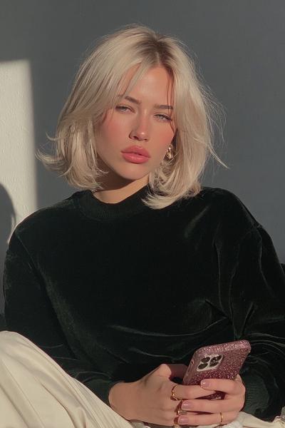 Platinblonder, texturierter Bob mit softer Ponywolke