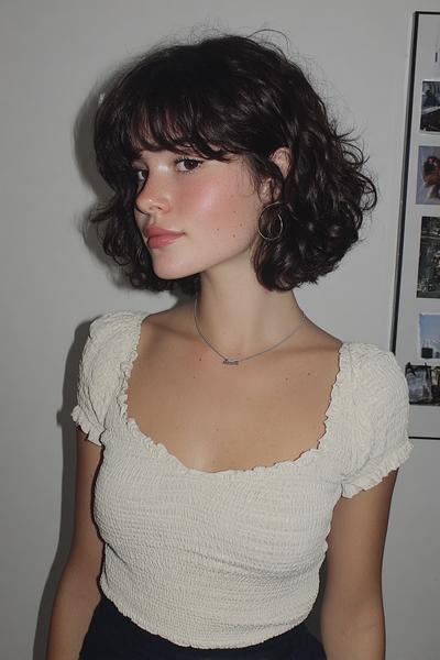 Curly Bob mit Curtain Bangs