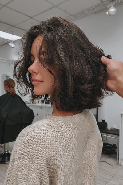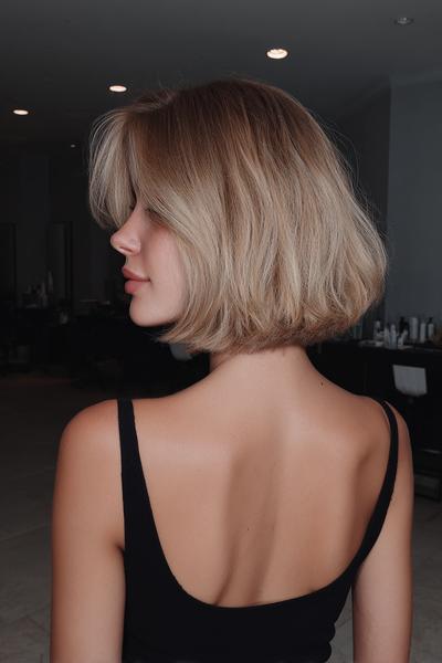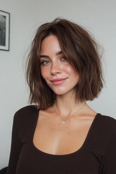 Dieser Schnitt küsst den Nacken und wirkt durch sanft gestufte Spitzen super modern. Ich liebe den leicht fransigen Abschluss – ein Hauch French-Girl-Nonchalance bei jedem Schritt.