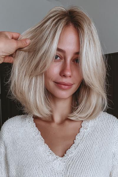 Platinblonder Long Bob mit Face-Framing