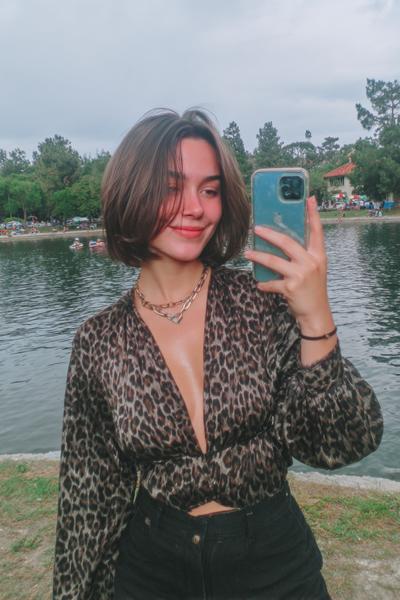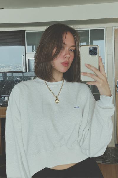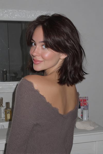 Der Pony setzt einen coolen Fokus, während die längeren Seiten weich schwingen. Ich arbeite mit Texturpuder am Ansatz und einem Touch Creme in den Spitzen – ergibt modernen French-Girl-Charme, ganz ohne Aufwand.