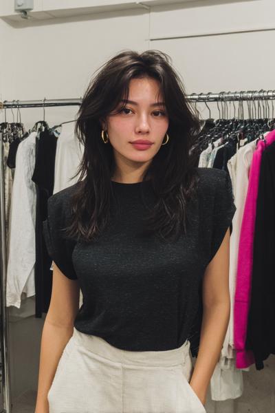 Ein cleaner, mittellanger Lob mit natürlicher Textur – schlicht, aber raffiniert. Ich scrunche etwas Meersalzspray ins feuchte Haar und lasse lufttrocknen. Ergebnis: lässige Bewegung ohne Styling-Stress.