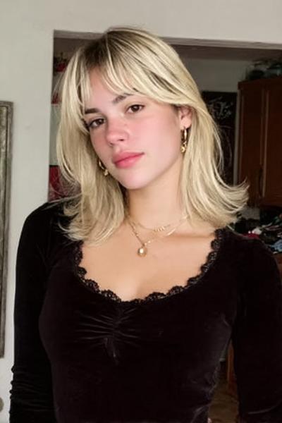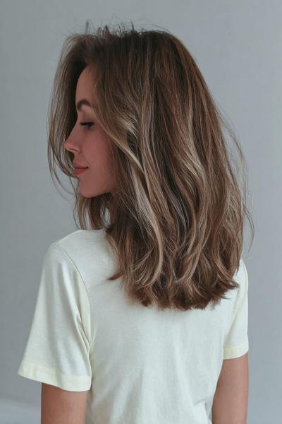 Dieser Schnitt trifft mein Mittellang-Herz: sanfte Stufen, zarte Wellen und eine luftige Frontpartie, die das Gesicht umrahmt. Mit etwas Volumenspray wird die Textur lebendig – ein alltagstauglicher, zeitloser Look, der mühelos elegant wirkt.