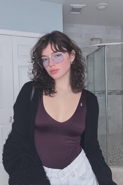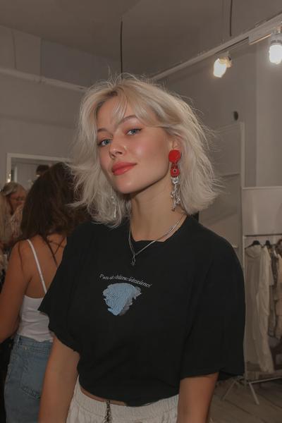 Dieser rockige Shag lebt von Textur. Ich föhne mit Diffusor, scrunche Salzspray hinein und arbeite an den Spitzen matte Paste. Ergebnis: griffig, sexy, ungezwungen – mein Feierabend-Look.