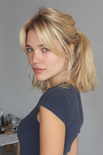 Dieser lässige Ponytail mit Curtain Bangs liebe ich für Tage, an denen alles effortless wirken soll. Luftige Stufen geben Schwung; ein Hauch Salzspray und sanftes Toupieren am Oberkopf – fertig.
