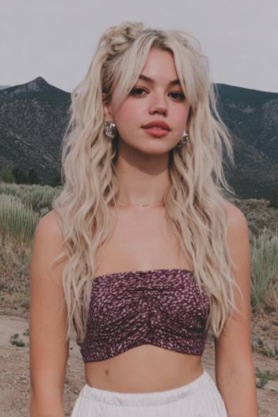 Boho-Vibes pur: halbe Hochsteckung mit locker gedrehten Strähnen und langen Beachwaves. Mit Salzspray vorbereiten, Wellen brechen, dann Twists fixieren. Lässig, romantisch, bereit für goldenes Abendlicht.